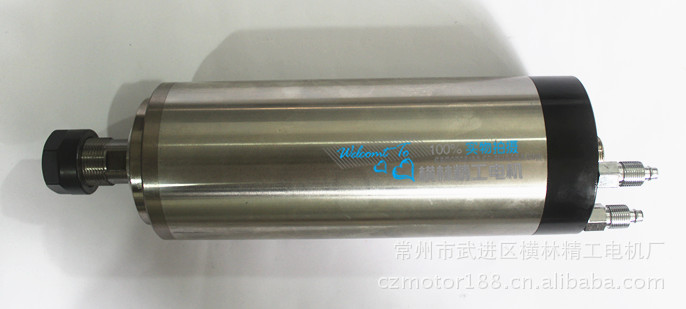 1、按要求连接电主轴进出水管接头,检查连接处是否漏水和通畅。水冷电主轴的冷却系统系统应于机床的总开关连接;开机后至停机的中间,冷却系统系统应连续工作;冷却液水量按2.5升/千瓦·分钟计算,冷却液流量按3~6升/分钟,小的电主轴取小值,大的电主轴取大值;冷却液要求使用单独水箱,冷却液要求每月定期更换;冷却液的温度应低于环境温度3~5℃为宜,最好控制在25℃左右。