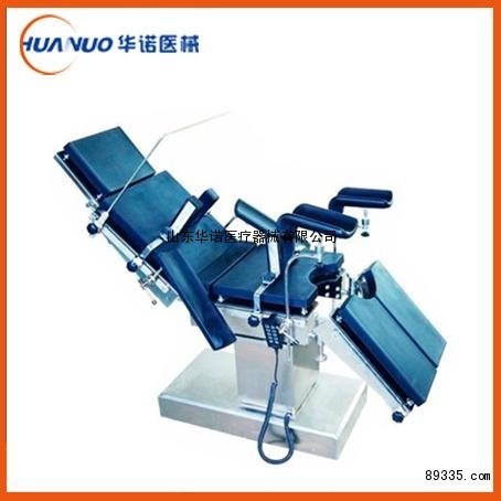 山东兖州华诺DST-1电动手术床供医院手术室实行头,颈,胸腹腔,会阴,四肢等外科,妇产科,泌尿科,五官科,脑外科等手术。此电动手术床腿板既可外展又可拆卸,调节方便,十分适合泌尿科手术;该电动手术床双层台面板全部采用高强度透光板制成,可在手术时进行射线诊察。此电动手术床前后倾,左右倾,上下升降及背板上下折均由电动推杆实现,按钮操作,安全可靠。