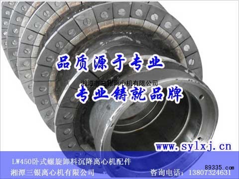 湘潭三银离心机有限公司专业生产卧螺离心机、及各类卧螺离心机配件,我公司离心机产品通过ISO9001-2008质量体系认证,保确了产品质量,材质可以根据客户要求选择,特别是我们生产的卧式螺旋离心机螺旋,可以与很多卧螺离心机厂家的原装卧螺离心机螺旋相媲美,甚至质量比原装更好。因为专注,所以专业,三银人20多年的努力,得到了广大客户的肯定,已使三银离心机成为卧螺离心机、卧式活塞推料离心机、双级活塞推料离心机行业响当当的品牌,三银离心机愿意真诚的与您成为合作伙伴,欢迎广大客户前来咨询、考察。