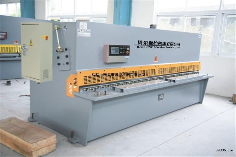 2. 后挡料:装于上刀架上随上刀架作上下摆动,后挡料的调节由0.55KW电动机驱动,经齿轮减速后由丝杆传动,在按下调节按“+”、“-”时可达到挡料板向前或向后的调节,(数字显示尺寸位置)在机动调节不能达到所需的调节值时,可旋动手动调节轮进行手动微调以确保所需的调节值,所以后挡料调节是方便可靠的。当剪切要板料长度大于后挡最大距离时,可将挡料板开至最后位置,将挡料板抬起,即可剪切任意的板料。