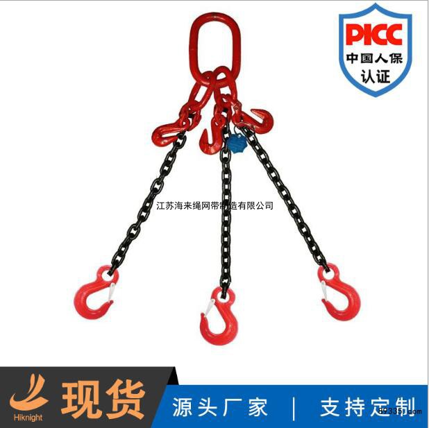 链条索具是以金属链环连接而成的索具,按照其形式主要有焊接和组装两种,按其构造单只和多只等,采用合金钢,其突出特点是耐磨、耐高温、延展性低、受力后不会伸长等。其使用寿命长,易弯曲,适用于大规模、频繁使用的场合。灵活的多肢,多种组合形式可提高工作效率、降低成本等。
