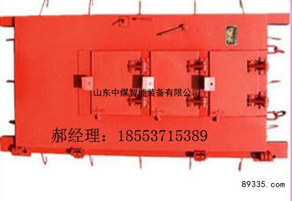 2、门扇上部装有三组通风活门装置,即在活门底板开有三组共18个直径122mm的通风孔,活门板外部装有自动 张开12度角的活门悬板。每组活门通风量为2000立方/h,总通风量为6000立方/h,风速按8m/s进行设计,使用时可根据井下爆破材料库需要风量和总回风道负压值,确定通风活门组数,并可调节每组活门悬板的张启角度进行微调,以满足**通风量。当库内一旦发生意外情况,冲击波经过衰减后,余压只要大于20KPa时,活门悬板受压再3-8s内自动关闭,与外界隔离,起到保护作用,由总回风道排出。