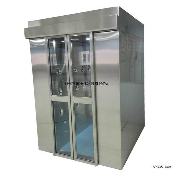 风淋室是人员进出洁净室所需要的通道,并同时起到气闸室密闭洁净室的作用。为了减少由于人员进出所带来的大量尘埃粒子,经过滤器过滤后的洁净气流由箱体两侧可旋转喷嘴淋至人/货物表面,有效而迅速清除尘埃粒子,清除后的尘埃粒子再由初、过滤器过滤后重新循环到风淋区域内。为了达到吹淋的效果,风速做到风速高,时间1-99s可调,多种参数可供客服选择。