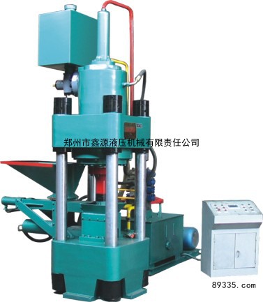 “鑫源”牌全自动液压海绵铁高密压块机能将海绵铁在不加入任何粘合剂的情况下压制成高密度圆柱形饼块(重量2-8公斤),饼块密度可达5T/M3以上(海绵铁含铁量不同,压出饼块密度不重量也不相同)。