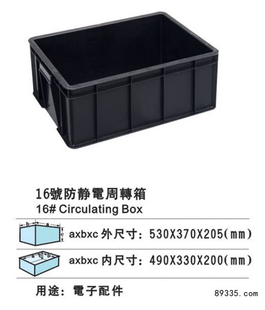 深圳胶箱厂家 防静电胶箱 普通塑料胶箱 深圳环保胶箱 深圳胶箱厂家 深圳防静电胶箱 深圳周转箱厂家 周转箱也称为物流箱,广泛用于机械、汽车、家电、轻工、电子等行业,能耐酸耐碱、耐油污,无毒无味,可用于盛放食品等,清洁方便,零件周转便捷、堆放整齐,便于管理。其合理的设计,优良的品质,适用于工厂物流中的运输、配送、储存、流通加工等环节。周转箱可与多种物流容器和工位器具配合,用于各类仓库、生产现场等多种场合,在物流管理越来越被广大企业重视的今天,周转箱帮助完成物流容器的通用化、一体化管理,是生产及流通企业进行现代化物流管理的品。 常用于零售业 服装、烟草、图书、医药、化妆及其它高**产品的分销零售、生产线、汽车、航空、电子及通讯等行业的生产线 物流配送业 门到门的物流配送业 一、根据用途分为: 1、防静电周转箱, 2、导电周转箱, 3、零部件防静电周转箱, 二、根据性能分为: 1、可堆式防静电周转箱、 2、可插式防静电周转箱、 3、折叠式防静电周转箱, 4、中空板防静电周转箱 三、防静电周转箱根据物理性能可以分为: 1、防静电:表面阻值10的6次方至10的9次方 2、导电:表面阻值10的4次方以下至10的6次方 品名 外尺寸(mm) 内尺寸(mm) 1号零件箱斜口 95*105*50 80*90*40 2号零件箱斜口 165*95*70 145*80*60 3号零件箱斜口 175*105*80 155*90*70 4号零件箱斜口 200*130*90 170*110*80 5号零件箱斜口 235*155*120 215*140*110 6号零件箱斜口 105*105*50 88*88*47 7号零件箱斜口 130*140*70 108*125*65 A2号零件箱斜口 180*120*80 150*97*72 A3号零件箱斜口 250*150*120 205*132*112 A4号零件箱斜口 350*210*160 305*172*130 1-2号周转箱:1#155×100×22(mm),2#255×175×75(mm) 3号 塑料周转箱:外尺寸:360×270×135(mm),内尺寸:320×240×125(mm) 4号 塑料周转箱:外尺寸:420×310×155(mm),内尺寸:380×280×145(mm) 5号 塑料周转箱:外尺寸:500×360×175(mm),内尺寸:455×325×165(mm) 6号 塑料周转箱:外尺寸:565×420×240(mm),内尺寸:510×390×235(mm) 7号 塑料周转箱:外尺寸:670×420×155(mm),内尺寸:630×375×145(mm) 8号 塑料周转箱:外尺寸:565×420×300(mm),内尺寸:510×390×295(mm) 9号 塑料周转箱:外尺寸:565×420×380(mm),内尺寸:510×390×375(mm) 10号塑料周转箱:外尺寸:610×500×360(mm),内尺寸:560×460×355(mm) 11号塑料周转箱:外尺寸:720×560×380(mm),内尺寸:675×515×370(mm) 12号塑料周转箱:外尺寸:615×430×120(mm),内尺寸:580×390×115(mm) 13号塑料周转箱:外尺寸:580×370×200(mm),内尺寸:535×340×190(mm) 14号塑料周转箱:外尺寸:580×370×165(mm),内尺寸:535×340×150(mm) 15号塑料周转箱:外尺寸:610×500×155(mm),内尺寸:560×455×143(mm) 16号塑料周转箱:外尺寸:610×500×300(mm),内尺寸:560×460×295(mm) 17号塑料周转箱:外尺寸:720×450×180(mm):内尺寸:680×420×175(mm) 18号塑料周转箱:外尺寸:620×415×160(mm),内尺寸:590×385×140(mm) 19-20号周转箱: 19#205×134×65(mm) , 20#305×200×90(mm) 21号塑料周转箱:外尺寸:380×240×100(mm),内尺寸:340×220×95(mm) 22号塑胶周转箱:外尺寸:610×500×400(mm),内尺寸:560×460×395(mm) 23号塑胶周转箱:外尺寸:850×620×450(mm),内尺寸:805×575×440(mm) 24号塑胶周转箱:外尺寸:610×415×245(mm),内尺寸:580×380×240(mm) 25号塑胶周转箱:外尺寸:620×425×320(mm),内尺寸:580×395×310(mm) 26号塑胶周转箱:外尺寸:615×425×250(mm),内尺寸:580×390×240(mm) 27号塑胶周转箱:外尺寸:615×425×200(mm),内尺寸:580×390×190(mm) 30号塑胶周转箱:外尺寸:555×425×145(mm),内尺寸:520×395×140(mm) 31号塑料周转箱:外尺寸:590×405×175(mm),内尺寸:345×365×170(mm) 32号塑料周转箱:外尺寸:530×370×205(mm),内尺寸:490×330×200(mm) 35号塑料周转箱:外尺寸:750*550*430(mm),内尺寸:690*485*425(mm) 35号周转箱 750*550*430 690*485*425 深圳胶箱厂家 深圳防静电胶箱 深圳周转箱厂家