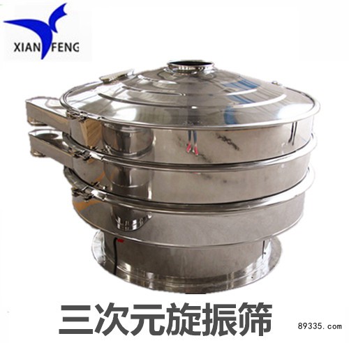 三次元振动筛产品特点 /?Product Overview ??三次元旋振筛特点:任何颗粒、粉末、粘液一定范围内均可筛选。筛分较细至500目或0.028mm, 过滤较小可至5微米。分级筛选,可筛一至五层筛网,能同时进行二至六个等级的分选或过滤。**、设计精巧**,换网容易、操作简单、清洗方便。三次元旋振筛杂质、粗料自动排出,可以连续作业。*特网架设计,筛网使用时间长久,换网快,只需3—5分钟。体积小,节省空间,移动方便。 ?旋振筛适用行业?/ For industry 广泛应用于各类粉体行业 颗粒、粉末、粘液一定范围内均可筛选。 化工行业: 树脂粉、颜料、洗衣粉、微粉、油漆、纯碱、柠檬粉、橡胶、塑料等。 食品添加剂行业: 糖、盐、碱、味精、奶粉、豆浆、酵母、果汁、酱油、醋等。 冶金行业: 氧化钛、氧化锌、电磁材料、金属粉末、焊条粉末等。 医药行业: 中药粉、中药液、西药粉、西药液体、中西药颗粒等。 ?其它行业: 废油、废水、染整废水、造纸、助剂、活性炭等。 动画演示 / Animation demo 产品参数/ Product parameters ?型?号???? ?外框直径(mm)???? ?筛面直径(mm) ?有效筛分面积(?) ?较大入料粒度(mm) ?筛网目数(目/英寸) 层数? 振次(Rpm)? ?功率(KW) ?XF-400 ?400???? ?340 ?0.09 ?〈10 ? 2-500 ?1-4 ?1500 ?0.25-0.37 ?XF-600 ?600 ?530 ?0.22 ?〈10 ??2-500 ?1-4 ??1500 ?0.37-0.55 ?XF-800 ?800 ?720 ?0.4 ?〈20 ??2-500 ?1-4 ??1500 ?0.55-0.75 ?XF1000 ?1000 ?900 ?0.63 ?〈20 ??2-500 ?1-4 ??1500 ?0.75-1.1 ?XF1200 ?1200 ?1100 ?0.95 ?〈20 ??2-500 ?1-4 ??1500 ?1.1-1.5 ?XF1500 ?1500 ?1400 ?1.5 ?〈20 ??2-500 ?1-4 ??1500 ?2.2-3.0 ?XF1800 ?1800 ?1710 ?2.3 ?〈30 ??2-500 ?1-4 ??1500 ?3.0-4.5 购买须知/Buying tips 1.尺寸型号: 本设备技术参数由需方提供,设备制作参数由我方提供,经双方协商较终确认设备技术参数图纸为准;对于自选型号规格的设?备,如未达到客户要求效果,本店拒绝退货; 2.货源说明: 先锋振动是加工生产型厂家,所出售设备具有良好的品质保障,一站式服务您理想的选择; 3.物流发货: 根据不同机型及地区不同,发货的物流及配货方式也各自不同,机器设备图片仅供参考,由具体沟通后出具为准。 4.安装售后: 本公司提供完善的售后服务,凡本厂生产销售的设备,整机质保一年,如果在使用过程中出现质量问题,本厂将负责以较快的?速度协助售后工作,易损件除外;未经允许的拆卸、不正当操作等人为或不可抗拒因素造成的损坏不在保修范围之内; 先锋振动阿里巴巴/ 超声波振动/ 直线振动/ 先锋振动慧聪/
