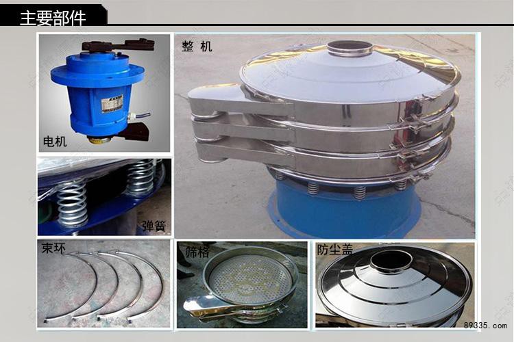 旋振筛是一种**细粉筛分机械,其噪音低、**,快速换网需3-5分钟,全封闭结构,适用于粒、粉、粘液等物料的筛分过滤。旋振筛是由直立式电机作激振源,电机上、下两端安装有偏心重锤,将电机的旋转运动转变为水平、垂直、倾斜的三次元运动,再把这个运动传递给筛面。调节上、下两端的相位角,可以改变物料在筛面上的运动轨迹。 特点 1.体积小、重量轻、移动方便、出料口方向可任意调整,粗、细料自动排出,可自动化或人工作业。 2.筛分精度高、**,任何粉、粒、粘液类均可使用。 3.筛网不阻塞、粉末不飞扬、筛分较细可达500目(28微米)过滤较细可达5微米。 4.*特网架设计(子母式)、筛网使用长久、换网方便、仅需3—5分钟、操作简单、清洗方便。 5.无机械动作、保养简易、可单层或多层使用、与物料接触部位为用不锈钢制作(医药用除外)。 适用行业 各类粉体行业 任何颗粒、粉末、粘液一定范围内均可筛选。 工行业:树脂粉、颜料、洗衣粉、微粉、油漆、纯碱、柠檬粉、橡胶、塑料等。 磨料、陶瓷行业:氧化铝、石英砂、泥浆、喷雾土粒。 食品行业:糖、盐、碱、味精、奶粉、豆浆、酵母、果汁、酱油、醋等。 造纸行业:涂布涂料、白土泥浆、黑白液、废液、造纸液、废水回收。 冶金行业:氧化钛、氧化锌、电磁材料、金属粉末、焊条粉末等。 制药行业:中药粉、中药液、西药粉、西药液体、中西药颗粒等。 环境保护:垃圾、人畜粪便、废油、食品废水、废水加工等。 安装 1、检查电机标牌是否与要求相符。 2、用500伏兆欧表测量绝缘电阻,其值应对定子绕组进行干燥处理,烘干温度不能*过120℃。 3、检查电机各紧固件,谨防松动。 4、检查电机表面有无损坏、变形。 5、检查是否转动灵活,若有异常,应排除。 6、检查电源,是否缺相,并空载运行5分钟。 安装与调整 1、电机应紧固在安装面上,安装面必须光滑、平整。 2、电机可水平安装。 3、电机引线采用四芯橡胶电缆YZ-500V,接电源时引出线电缆不允许有急折,并与振动体可靠固定。 4、电机应有可靠的接地,电机内有接地装置,引线端有标志,亦可利用底脚坚固螺栓接地。 5、激振力的调整。