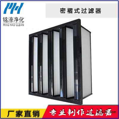 MZ系列密褶式中效过滤器是除尘器的**产品,MZ系列密褶式中效过滤器的清洁效果直接决定除尘器的使用情况,MZ系列密褶式中效过滤器常用的自动清洁方式的原理有高压气体脉冲反吹,机械振动。 MZ系列密褶式中效过滤器脉冲反吹是利用控制仪预先设定的参数给电磁阀一个信号,瞬间开闭电磁阀膜片,使高压气体进入喷吹管,利用气体的急速膨胀力抖落滤筒表面的灰尘,一般气体压力我们设定为6公斤力左右。从而达到清理灰尘的效果。 MZ系列密褶式中效过滤器机械振动清洁常用于小型单机MZ系列密褶式中效过滤器,它是利用除尘器花板上偏心装置产生的抖动力来清灰,这个动作需要停机后操作。 用途:洁净室用,商用和一般通风系统。 特点: ◆ 有效过滤面积大、阻力低、使用寿命长; ◆ 占用空间小,使中央空调系统结构设计*紧凑; ◆ 其中MZ/P型可**焚烧,符合环保要求; MA/P型密褶式过滤器,滤料为化学纤维,效率规格有F7、F8、F9、H10 MZ/P型密褶式过滤器,滤料为玻璃纤维,效率规格有F6、F7、F8、F9、H10