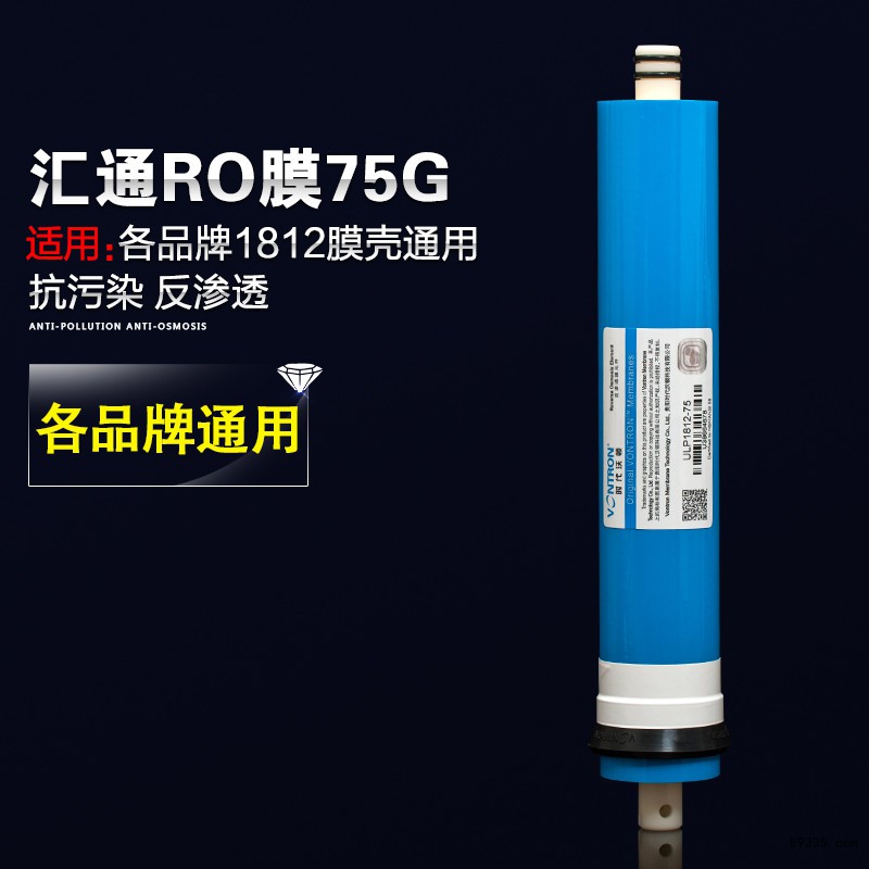 ro膜 反渗透 膜50G 75加仑滤芯净水器RO膜家用纯水机净水滤芯批发 产品规格:1812-50G/75G 日产水量:75加仑(283公升) 更换时间:视当地水质和用水量而定一般为2-3年。 RO反渗透膜功能: 利用*静压力泵产生高压渗透,使水分子和离子态的矿物质元素通过一层逆渗透膜,而溶解在水中的绝大部分重金属、有机物以及细菌、病毒等则无法透过逆渗透膜被截留(逆渗透膜上的孔径只有0.0001um,而病毒的直径一般有0.02-0.4um,普通细菌的直径有0.4-1um),能有效去除水中的有机物、细菌、病毒、蛋白质、热原、微生物、胶体以及重金属等一切杂质,滤后水质符合国家生饮水标准,可直接生饮! RO反渗透膜过滤精度高达0.0001um,能有效去除水中的有机物、细菌、病毒、蛋白质、热原、微生物、胶体以及重金属等一切杂质,反渗透膜(RO纯水机主要部件)一个细菌要缩小四千倍、传染性病毒要缩小200倍以上才能通过。ro膜利用逆渗透原理将水中所含无机盐、重金属、细菌、病毒等危害人体健康的物质和纯水分离(99%以上的去除率)滤后水质符合国家生饮水标准,可直接生饮。 RO反渗透膜)逆渗透膜,引入了当今世界较为**的美国RO逆渗透水处理技术直接对接自来水处理,本产品可有效去除水中的细微杂质、有机物、重金属离子、病毒、细菌等有害物质,仅保留了水分子和溶解氧,所制造的纯水甘甜可口可直接生饮,健康,安全。 应用领域:覆盖饮用水、*纯水、工业用水、饮料、制药、医疗、电子、化工、**等,所有水处理应用。