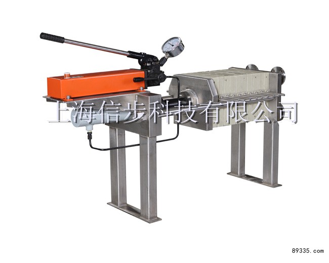 小型隔膜压滤机   小型隔膜压滤机是专为小型试验和中试试验制作的实验室*隔膜压滤机,其压榨形式分为气体(空气、惰性气体)压榨和液体(水、油)压榨,可满足不同行业的需要。根据客户需要压榨组件可配置食品级和普通级,控制可采用PLC及人机界面。对于一般物料,隔膜鼓膜3-15分钟之后,就可以发挥压榨脱水的作用。对于部分特殊物料也可采用先低压压榨后高压压榨的分段压榨方法。 隔膜滤板能满足脱水的过滤工艺,并能保障压滤机发挥较好过滤的效果。隔膜滤板有分体式高压聚丙烯隔膜滤板、 一体式高压聚丙烯隔膜滤板、嵌入式滤布高压聚丙烯隔膜滤板和橡胶隔膜滤板。   在进料过程结束后,通过对滤饼进行压榨,来提高整机的脱水效率,??加滤饼的干度,降低污染和减少劳动力。在某些工艺中可免去干燥工艺。如果在压榨前和压榨后,增加吹风操作,进一步降低滤饼含水率。   上海信步小型隔膜压滤机具有:   1、缩短过滤操作时间。   2、用*短的时间完成这一段过程,生产效率大为提高。   3、节省操作动力的消耗,在过滤后期,流量小,压力高。   4、隔膜压榨功能,在*短的时间完成这一段过程,节省了功率消耗。   5、提升泥饼干度,降低泥饼含率,隔膜压榨对静态过滤结束后的滤饼进行二次压榨,使滤饼的结构重排,致密度加大,从而置换出一部分水分,提高了干度。   6、抗腐蚀能力强,基本适用于所有固液分离作业。   7、隔膜滤板具有抗疲劳、抗老化、密封性能好等特点。   上海信步科技有限公司提供的小型隔膜压滤机能提升压滤机的处理能力, 增加压滤机的操作弹性,特别是需要泥饼清洗的操作。 小型隔膜压滤机由隔膜板和厢式滤板排列组成滤室,在输料泵的压力作用下将浆料输入滤室,通过过滤介质(滤布)将浆料中的固体和液体分离,当浆料中的固体形成滤饼后,再像隔膜通入空气,对滤室内的固体充分压榨,降低含水率。对于粘性物料的过滤及对含水率要求较高的用户,此机*有其*特的特性。