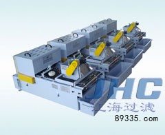 纸带过滤机、重力式过滤机(**、性能)纸带过滤机之所以能逐步被机床厂所接受,主要还是几个特点: 1, 能够代替工人操作,无需人工参与,省时省力 2, 过滤精度高,过滤精度达到15-30微米范围,能够大大减少冷却液中颗粒的数量。 3, 大幅度延长冷却液使用寿命,减少更换次数,减轻了冷却液因含有杂质对于加工工件的磨损。 4, 可配合恒温装置对切削液进行恒温冷却,以满足对冷却液温度要求比较严格的主机;还可以增加磁性分离器,使机床切削液实现了二级过滤,过滤效果得到大大改善;减少耗材; 5, 实现了真正的自动化控制。 性能及用途 JHZG系列纸带过滤机能够充分滤除冷却液(油)中的各类金属、非金属细微杂质,机器传动机构上的链条,筛网是呈弧面状的,铺在它们上面的无纺布也呈弧面状,携带有杂质的污液流到无纺布上时,净液进入液箱,细微切屑及杂质被吸附到滤布上。当堆积在无纺布上的污物增多将无纺布堵塞时,污液液面上升,浮起液位控制器,液位发令发出信号,减速机便带动链条及筛网运动,污物及脏布落入脏纸箱,从而实现滤布的自动更换,滤布*新后,污液液面下降,液位发令发出信号,减速机停止转动,机器进入下一过滤循环。进入液箱的净液由液泵输送至主机。