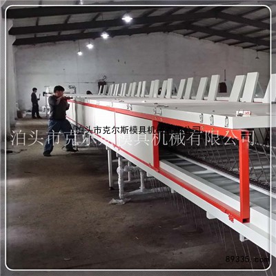 本设备在运转的基础上多次试验改进,具有稳定,节能,简单易操作等特点。本设备分喷胶布沙段,初次烘干段,面胶段和二次烘干段共70米,通过滚子链往复输送 。