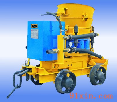 是用于干喷,潮喷混凝土的设备,它具有技术先进,结构合理,性能稳定,使用方便,寿命长等特点,广泛适用于矿山、隧道、涵洞、地铁、水电工程、地下工程及煤矿高沼矿井巷道喷射混凝土施工作业。