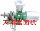 天阳原粮磨面机,磨糊机,磨浆机,浆渣分离机天阳磨面机具有结构简单、加工和安装工艺性好,体积小,操作使用方便,不易产生过扭矩或粘结面粉等优点,由进料、锥形磨和分离系统组成,磨面机的内、外磨头下端的配合面呈圆锥形,磨头的上方由两个向心球轴承作为两个主支承点,内、外磨头下端的圆柱作为旋转辅助支承点,并由内磨头的轴向移动调整内、外磨头的间隙。磨碎的粮食直接从磨头间隙经罗架落到罗底上,由可调整间隙的刷子与罗底将面粉与麸子(种皮)分离开。原粮磨面机集粉碎、磨面、磨糊,磨浆、饲料加工于一体,能将小麦、大米、小米、玉米、黄豆、芝麻、大豆、高梁、青稞等粮食类,以及其它部份化工原料,软质石,木粒物料等干磨制成粉,加水和磨成浆(糊)或浆渣分离,物料加工粗细可以调整,适于农村和小型化粮食、饲料加工作业。型号:TY-278,加工量:500-600公斤/小时,动力7.5KW,价格2780元,外型尺寸1400×500×850mm,重量135公斤。