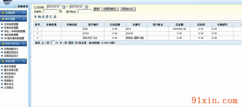 系统对车辆的销售,还贷、保险、等发生的财务费用进行统计分析。按照车牌号码、客户名称、月份等参数生成相应的财务报表。